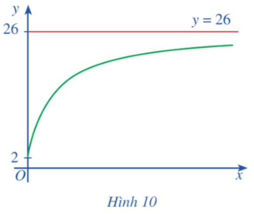 \(y = f(x) = \frac{26x+10}{x+5}\), với x ∈ [0; + ∞) có đồ thị là đường cong ở Hình 10 trong bài toán mở đầu. Tìm
