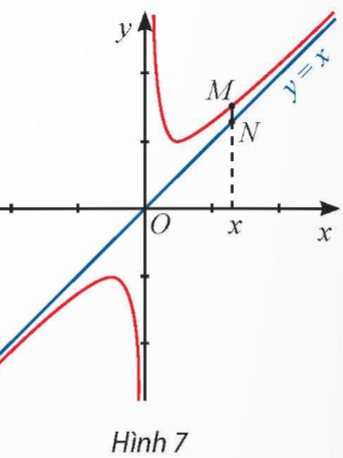 \(y = \frac{x^{2} +1}{x}\) và đường thẳng y = x. Đường thẳng vuông góc với trục Ox tại điểm x cắt đồ thị hàm số tại điểm M và cắt đường thẳng y = x tại điểm N (Hình 7).