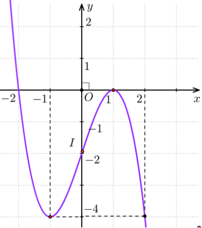 Vậy đồ thị hàm số y = – x3 + 3x – 2 được cho ở hình bên dưới.