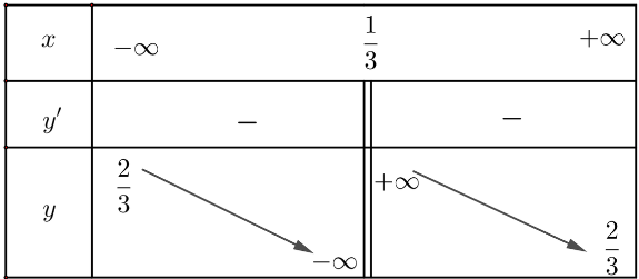\(x=\frac{1}{3}\) là tiệm cận đứng của đồ thị hàm số.