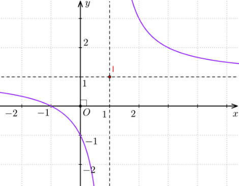 Tâm đối xứng của đồ thị hàm số là điểm I(1; 1).