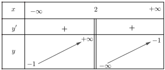 \(y'=-\frac{2}{\left(x-1\right)^2}\). Vì y' < 0 nên hàm số nghịch biến trên mỗi khoảng