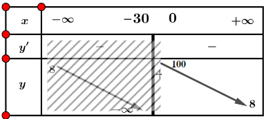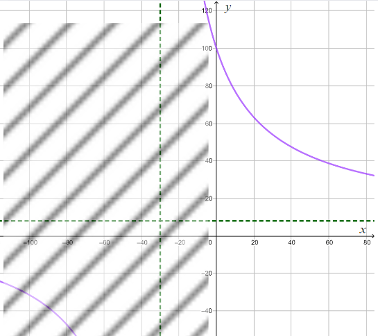 Do đó, đồ thị hàm số có tiệm cận đứng là đường thẳng x = - 30 và tiệm cận ngang là đường thẳng y = 8.