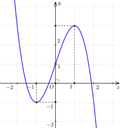 - Hàm số đạt cực tiểu tại x = − 1, giá trị cực tiểu yCT = − 1. Hàm số đạt cực đại tại x = 1, giá trị cực đại yCĐ = 3.