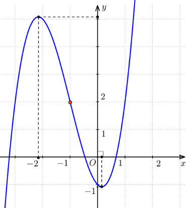 - Ta có: y' = 3x2 + 6x − 1. Vậy y' = 0 khi
