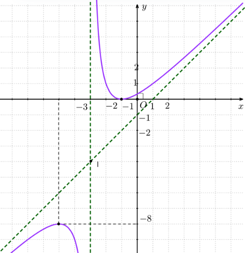 Do đó, đồ thị hàm số có tiệm cận đứng là đường thẳng x = – 3 và tiệm cận xiên là đường thẳng y = x – 1