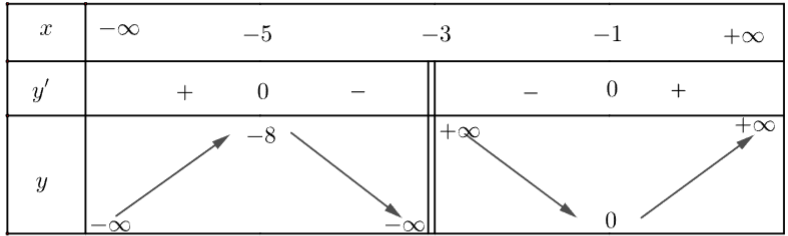 - Hàm số đạt cực đại tại x = – 5 với yCĐ = – 8