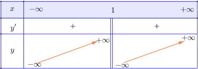 \(y'= 1+\frac{ 1}{\left(x-1\right)^2 } > 0\) với mọi x ≠ 1.