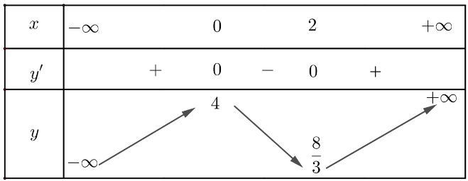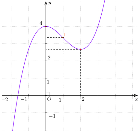 Điểm (0; 4) là điểm cực đại và điểm (2;