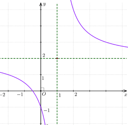 Tâm đối xứng của đồ thị hàm số là điểm I(1; 2).