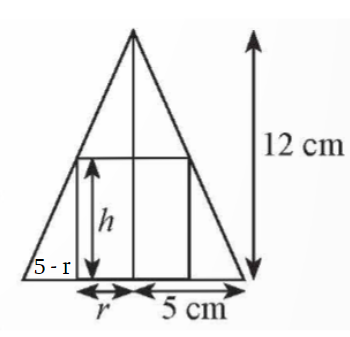 Cho một hình trụ nội tiếp trong hình nón có chiều cao bằng 12 cm và bán kính đáy bằng 5 cm (Hình 4a). Người ta cắt hình nón, trụ này theo mặt phẳng chứa đường thẳng nối đỉnh và tâm hình tròn đáy của hình nón thì thu được một hình phẳng như Hình 4b.