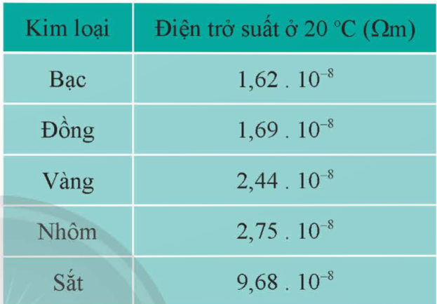 \(\rho\) của dây điện. Từ đó, hãy cho biết dây điện được làm bằng kim loại nào trong số các kim loại được cho ở bảng sau: