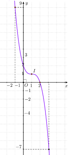 Vậy đồ thị hàm số y = – x3 + 3x2 – 3x + 2 được cho ở hình bên dưới.