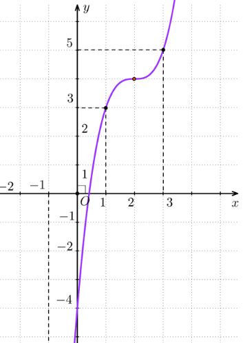Vậy đồ thị hàm số y = (x – 2)3 + 4 được cho ở hình bên dưới.