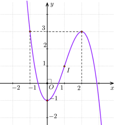Vậy đồ thị hàm số y = – x3 + 3x2 – 1 được cho ở hình bên dưới.