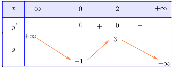 Hàm số đạt cực đại tại x = 2, yCĐ = 3; hàm số đạt cực tiểu tại x = 0, yCT = – 1.