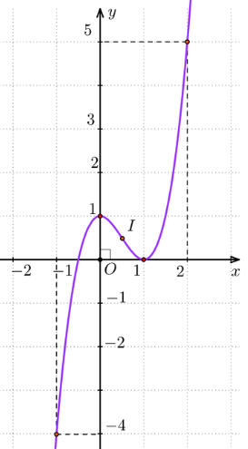 Vậy đồ thị hàm số y = 2x3 – 3x2 + 1 được cho ở hình bên dưới.