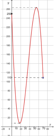 h(0) = 250; h(70) = 110