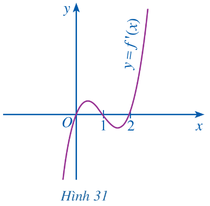 \(y=f\left(x\right)=\frac{1}{4}x^4-x^3+x^2+1\) có đồ thị hàm số y = f'(x) cho ở Hình 31.