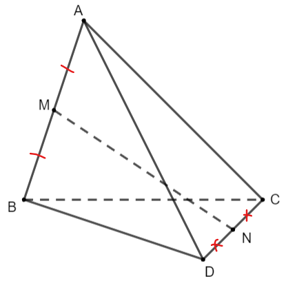 Cho tứ diện ABCD có M và N lần lượt là trung điểm của AB và CD. Tìm các vectơ: