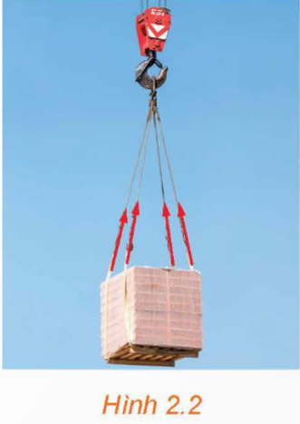 Trong Hình 2.2, lực căng dây (được tạo ra bởi sức nặng của kiện hàng) được thể hiện bởi các đoạn thẳng có mũi tên màu đỏ.