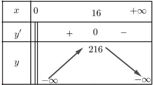 y' = 0 ⇔ x = 16 (vì x > 0)