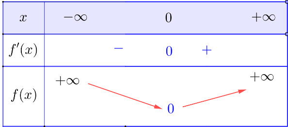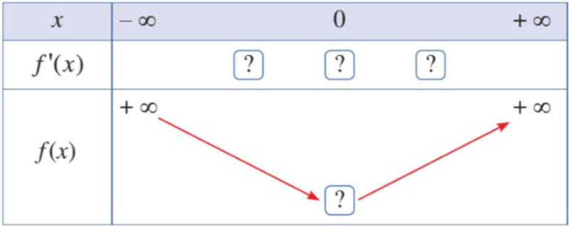 - Xét dấu của đạo hàm f'(x) = 2x.