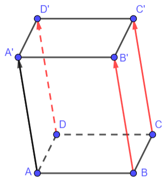 \(\overrightarrow{AA'}\) và AA' = B'B = C'C = D'D (tính chất hình hộp) nên ba vectơ