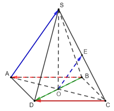 Gọi O là tâm của đáy ABCD và E là trung điểm của SC.