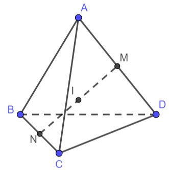 Cho tứ diện ABCD. Gọi M, N lần lượt là trung điểm của các cạnh AD và BC, I là trung điểm MN. Chứng minh rằng: