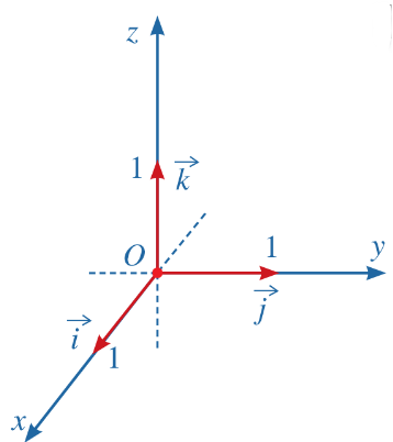 \(\vec{j}\) xuất phát từ điểm gốc O, theo chiều dương của trục Oy và có độ dài bằng 1.