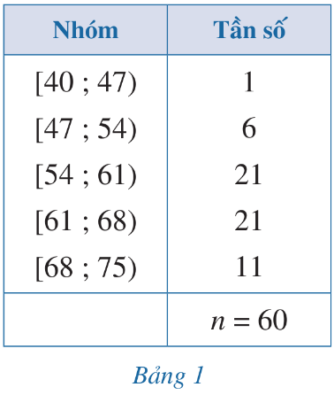 Trong mẫu số liệu ghép nhóm đó, ta có: đầu mút trái của nhóm 1 là a1 = 40, đầu mút phải của nhóm 5 là a6 = 75.
