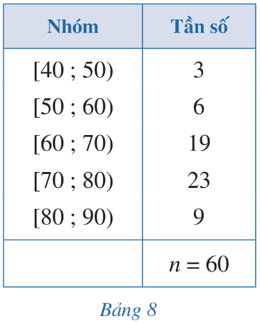 Bảng 8 biểu diễn mẫu số liệu ghép nhóm về số tiền (đơn vị: nghìn đồng) mà 60 khách hàng mua sách ở một cửa hàng trong một ngày.