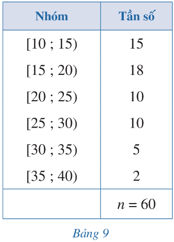 Bảng 9 biểu diễn mẫu số liệu ghép nhóm thống kê mức lương của một công ty (đơn vị: triệu đồng).