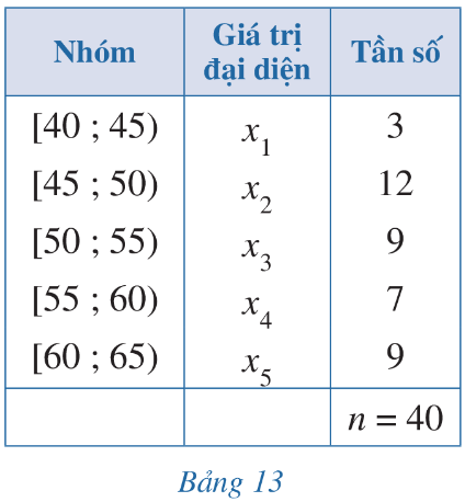 Xét mẫu số liệu ghép nhóm cho bởi Bảng 13.