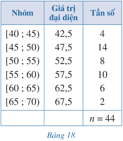 Một siêu thị thống kê số tiền (đơn vị: chục nghìn đồng) mà 44 khách hàng mua hàng ở siêu thị đó trong một ngày. Số liệu được ghi lại trong Bảng 18.