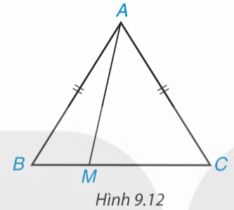 Cho tam giác cân ABC, AB = AC. Lấy điểm M tùy ý nằm giữa B và C (H.9.12)