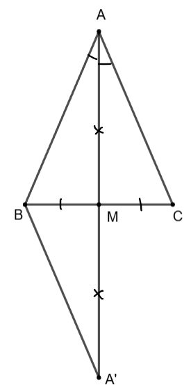 \(\widehat {BA'M} = \widehat {CAM}\) (hai góc tương ứng) và AC = BA' (hai cạnh tương ứng)