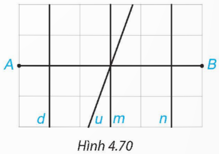 Trong Hình 4.70, đường thẳng nào là đường trung trực của đoạn thẳng AB?