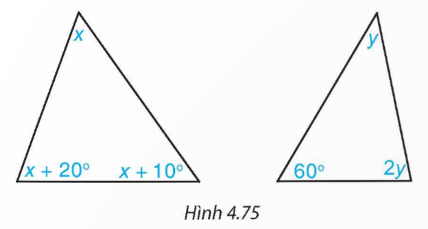 Tính các số đo x, y trong tam giác dưới đây (H.4.75)