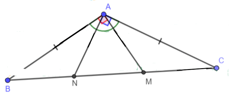 \(\widehat {A{\rm{ }}} = 120^\circ\). Trên cạnh BC lấy hai điểm M, N sao cho MA, NA lần lượt vuông góc với AB, AC. Chứng minh rằng: