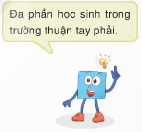 Vuông đưa ra ý kiến về tay thuận của các học sinh trong trường như hình bên. Em hãy đưa ra phương án thu thập dữ liệu phù hợp để giúp Vuông kiểm tra ý định các bạn học sinh đang kiến của mình nhé!