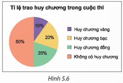 Biểu đồ Hình 5.6 cho biết tỉ lệ thí sinh được trao huy chương các loại trong một cuộc thi. Em hãy cho biết: