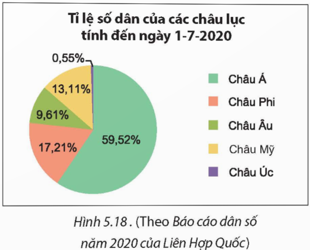 – Tiêu đề: Tỉ lệ số dân của các châu lục tính đến ngày 1 – 7 – 2020.