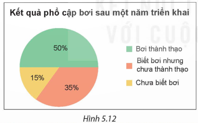 Từ kết quả thu thập dữ liệu về kĩ năng bơi của học sinh tiểu học (H.5.12), em hãy ước lượng xem trong 800 học sinh tiểu học của một xã trong huyện đó, có bao nhiêu học sinh bơi thành thạo, bao nhiêu học sinh chưa biết bơi.