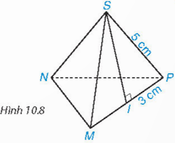 Tính diện tích xung quanh của hình chóp tam giác đều S.MNP trong Hình 10.8, biết IP = 3 cm và cạnh bên SP = 5 cm.