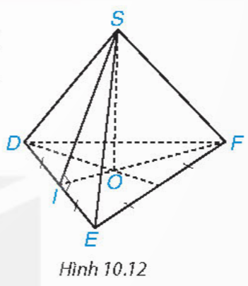 Gọi tên đỉnh, cạnh bên, mặt bên, mặt đáy, đường cao và một trung đoạn của hình chóp tam giác giác đều trong Hình 10.12.