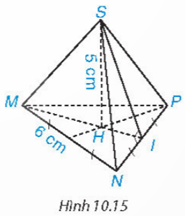 Cho hình chóp tam giác đều S.MNP có độ dài cạnh đáy bằng 6 cm, chiều cao bằng 5 cm (H.10.15).