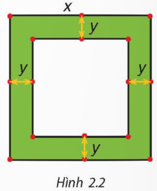 Một mảnh vườn hình vuông có độ dài cạnh bằng x (mét). Người ta làm đường đi xung quanh mảnh vườn, có độ rộng như nhau và bằng y (mét) (H.2.2)