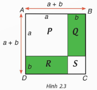 Sử dụng Hình 2.3. bằng cách tính diện tích hình vuông ABCD theo hai cách, hãy giải thích hằng đẳng thức (a + b)2 = a2 + 2ab + b2